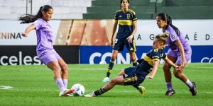 Desde el fondo, Yohana Masagli sigue atenta la jugada ante una posible pérdida de balón de su compañera, Lola Ruffini / Foto: Perfil de X de Boca Juniors Femenino Por …
